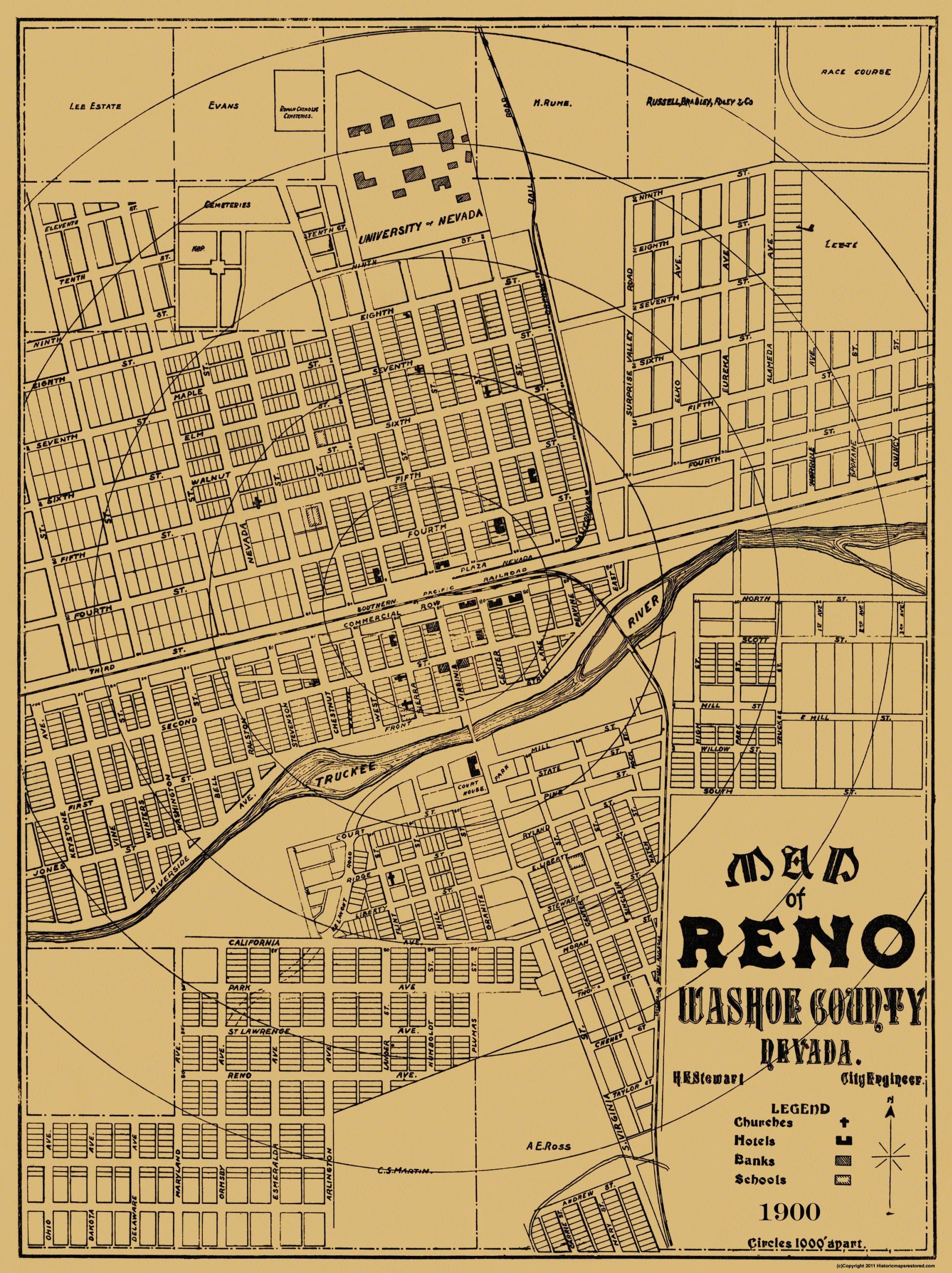 Historic City Map Reno Nevada Stewart 1900 23 x 30.69